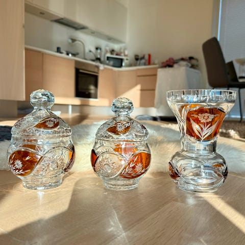 Selger to utsøkte krystallglass som vil tilføre et snev av luksus til ditt hjem.