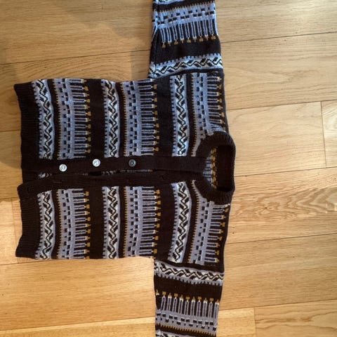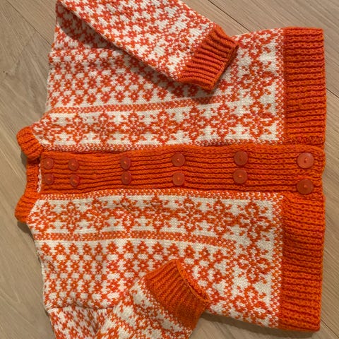 8-9 år, har en flekk bak inne i en av foldene, kan nok vaskes vekk