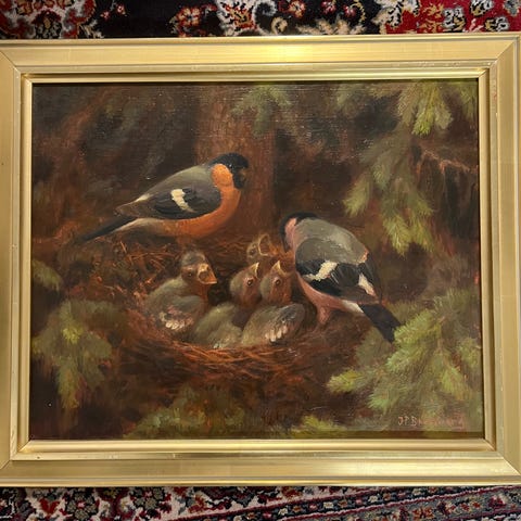 Ønsker å kjøpe ekte oljemaleri av JP Bratsberg med dyremotiv. Helst bjørn, gaupe eller rovfugl.