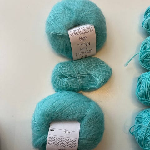 Garn fra House of yarn. Alle nøster I samme farge har samme innfarging. 15 hele nøster og et halvt.