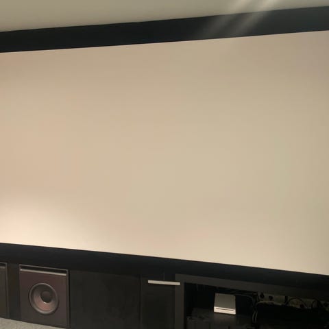 Proff kvalitet Dreamscreen Phantom HD ramme lerret med avblending fra 16/9 til Widescreen (2.35:1) for ekte "kino" opplevelse. Selges pga overgang til storskjerm. Oppheng for lerret ramme til vegg følger med. Sort filt dempet ramme design.