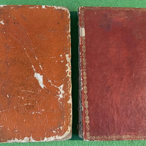 2 sjarmerende super gamle "tjukke" bøker skinn innbundet.
