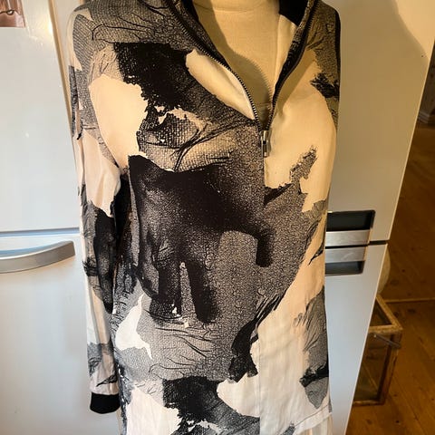 «HVIT LANG MØNSTRET BLUSE/SKJORTE», STR. 36/38