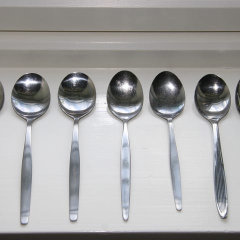 Deler av eldre bestikk selges. Sølvplett, 20 gr etc. De to minste skjeene har en bokstav inngravert. Vet ikke om det er S eller L. De to er 17.5 cm lang. De andre mellom 19 og 20 cm.