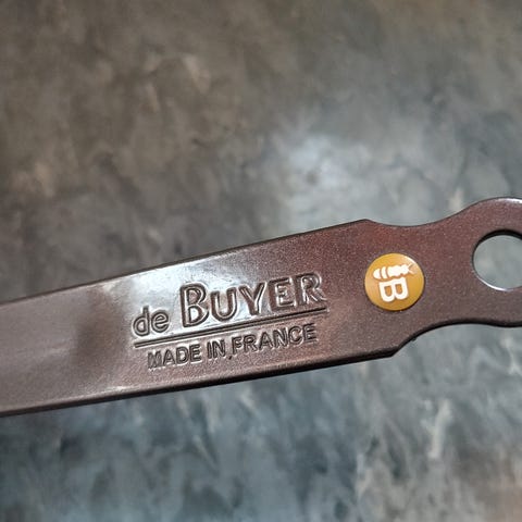 Søk på internett om info hvis du ikke kjenner til disse pannene. Støpt i ett stykke stål. Vær obs på størrelse og vekt, tung og stor panne. Helt ny, har en for mange. Den er ikke pakket inn, de sendes uten egen forpakning, kun pakket inn i brun papp. Disse er røft laget, må fjerne rester av linfrøolje (satt inn fra produset for å hindre rust), rengjøre og sette inn med ny olje før bruk. Hvis man bruker riktig metode når man setter den inn med olje, får man overraskende gode non-stick-egenskaper. Man finner informasjon på sidene til produsenten dartointernational.com