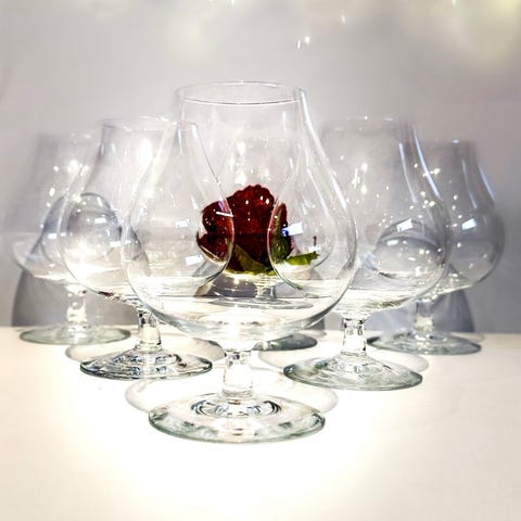 Åtte glass, cognac/konjakk, fra Hadeland glassverk. Modell Cromwell. Alle merket med frostet logo, "HADELAND". Volum: 20 cl. Hele, pene og blanke glass.