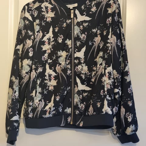 Sort/hvit med fine detaljer - lett jakke. Str 38
