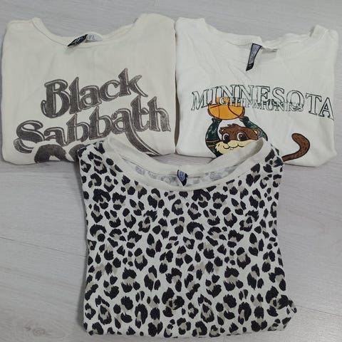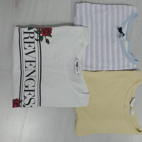 Klespakke t-skjorter til dame, hovedsakelig str M (se beskrivelse under bilder).