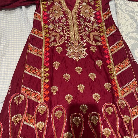 Pakistanske fest klær med fine detaljer og farger selges. 22 inch bryst. Brukt en gang , ingen feil eller skade. Kan sendes mot 69kr frakt. Kan møtes i Oslo eller Jessheim med forskudsbetalling. Eller hentes fra Årnes.