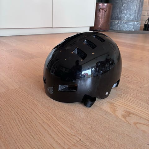 Hjelmen er så godt som ubrukt og har mye sportsglede til gode for ny eier. Den var litt liten for brukeren.