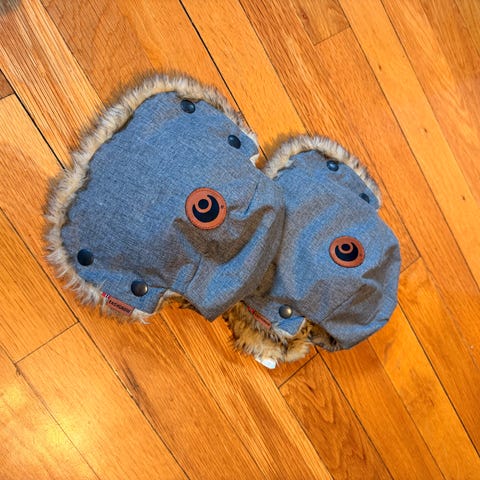 Til kalde dager på trilletur. Håndmuffene kan kobles sammen slik at de kan brukes enkle eller doble.