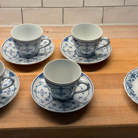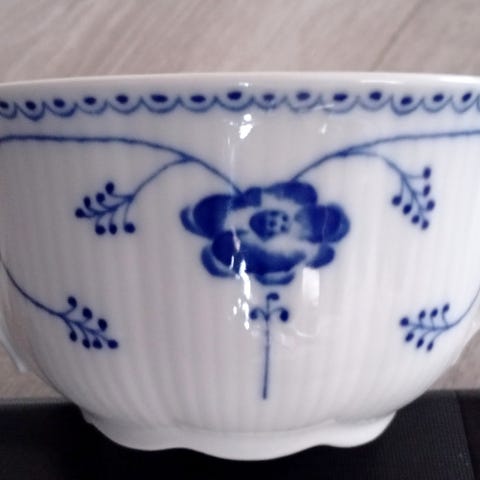 En stor kaffe/tekopp med to skåler -Royal Copenhagen, selges samlet. 30 cl (7,7 cm høy). Må hentes