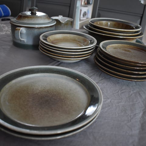 Stort og fint fat fra Porsgrund Porselen i serien Tundra. Fatet har grønt stempel og er håndmalt. Måler 36 cm i diameter.