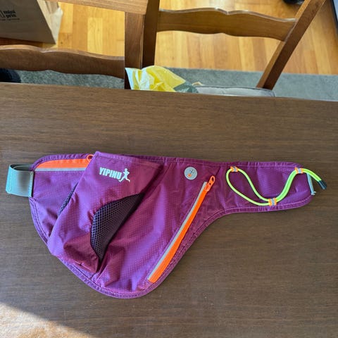 Lett, svart løpebelte / løpebånd / midjeveske med rosa og grå detaljer fra H&M. Kan justeres med borrelås. Brukt én gang.