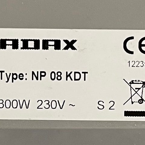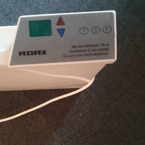 Pent brukt panelovn. Følger med veggfester. https://www.elkjop.no/product/hjem-rengjoring-og-kjokkenutstyr/inneklima-og-varme/oppvarming/varmeovner-og-panelovner/panelovn/adax-clea-panelovn-cp-08-kdt/CP08KDTW