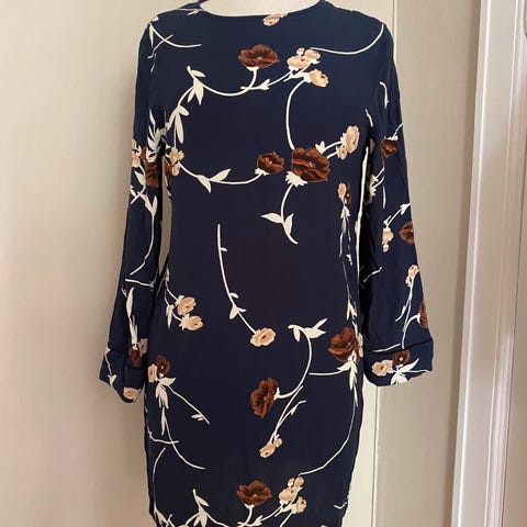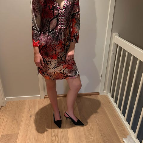 Sitter utrolig pent på, men ble plutselig for stor for meg. Pent og lite brukt, fint på jobb og fest. Den er i str S, men ville si at den passer til en liten M også. Har noe spandex i seg også, som får den til å sitte utrolig fin på kroppen. Kule detaljer med skinn på ryggen.