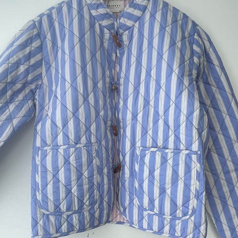 Dette er en vintage armyjakke med påsydd perlebroderier fra Sissel Edelbo. Det finnes kun en av denne - hver av disse jakkene er unike. Den kostet ny 2800,- Siden den er laget av en vintage armyjakke så har den noe slitasje - og det er meningen. Jeg har brukt den lite, da den er litt stor for meg.