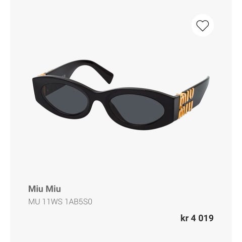 Helt nye ubrukte Miu Miu solbriller. Modellen heter MU 11ZS 16K5S0. Brillene er i fargen svart. Følger med etui og futteral. Kopi av kvitteringen følger også med.
