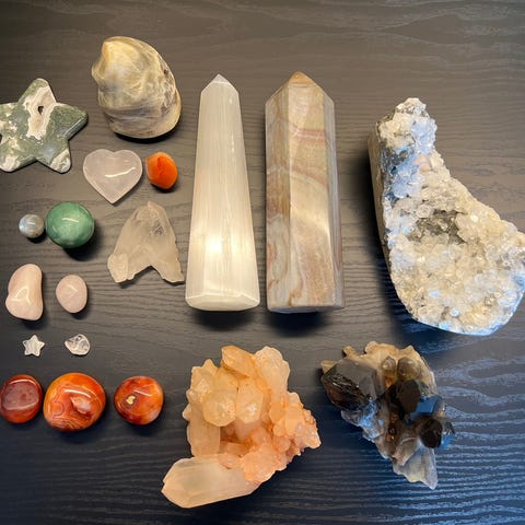 Krystaller, steiner og figurer til salgs. - Selges samlet.