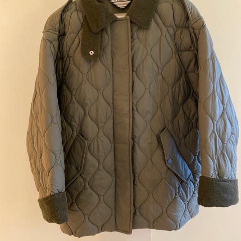 Kjempe fin jakke fra Monari selges. Den er men flotte elementer og kommer fra røyk og dyrefrit hjem. Brukt kun en gang