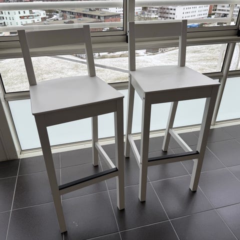 Meget pent brukte barstoler selges, sittehøyde 75 cm. Asphalt grey. Selges for 1500 kr per stk. Må hentes.