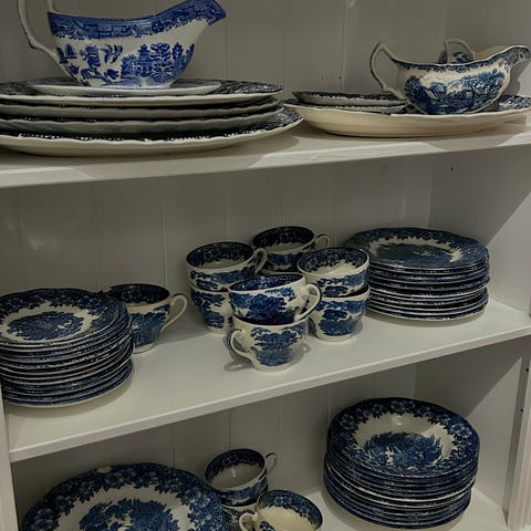 Nydelige middagstallerkener fra Blue Regal Peacock..
