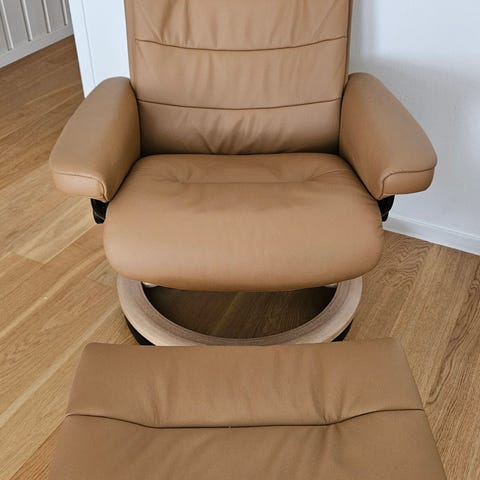 Stressless med skammel i sort skinn fra Hjellegjerdet selges. Veldig pent brukt og nydelig sittekomfort med regulerbar rygg.