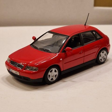 Selger en fin 2003 Audi A3 fra Minichamps i 1:43. Esken, plate og display finnes ikke lenger, har stått på hylla hos meg. Halve skiltet bak har falt av, ellers ingen synlige skader. Pass på å sikre deg denne modellen som allerede har blitt youngtimer.
