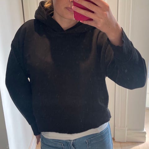 Pent brukt hettegenser fra Zara i stilig grønnfarge/flaskegrønn-farge. Bilder tatt i dagslys. Størrelse M, men kort/cropped modell, med splitt i sidene. Et mål vedlagt i annonsen. Kan ta flere mål om ønskelig! Denne modellen med split i sidene er utgått, og ikke lenger mulig å få tak i. 100,-kr