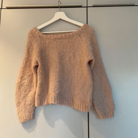 Nydelig hjemmestrikket genser i beige/offehite. Strikket i mykt garn som er lett å ha på kroppen, klør ikke