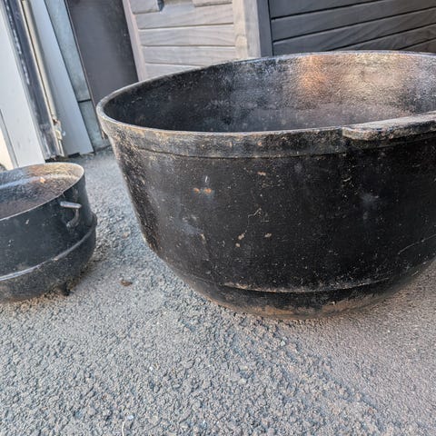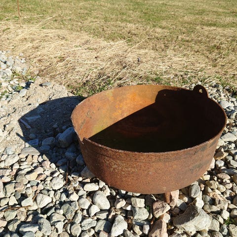Fin gammel jerngryte ( med håndtak )til hagen (blomster).