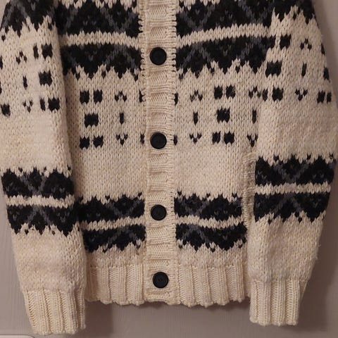 Fin og stor hjemmestrikket ullgenser i XXL / oversized XL (herrestørrelse). Tjukk, god og varm.