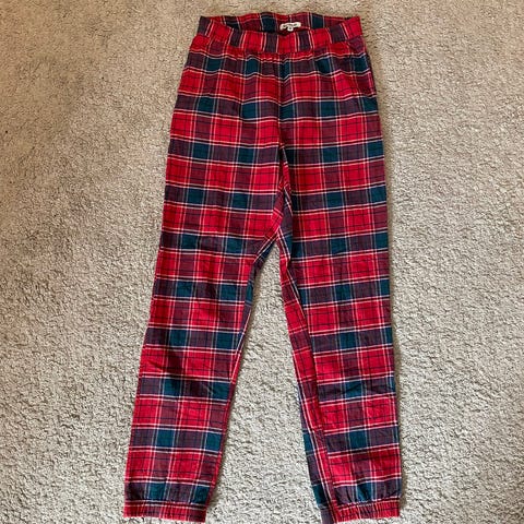 Pysj i bomull. Blå, hvit og gul-beige. Strikk i livet og nederst på bena.