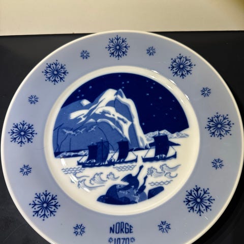 Porsgrunn porselen stor minne platte 1975