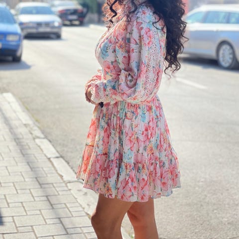 Selger min By Timo kjole i str XL. Kjolen har strikk rundt midjen og et belte som kan strammes inn. Selv str XL så passer kjolen de fleste.