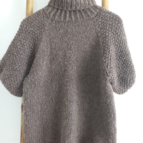 Mønsteret er "Perletopp" av Strikkose strikket med Line fra Sandnes garn. Toppen er 56 cm fra under arm til under arm og lengden er 59 cm.