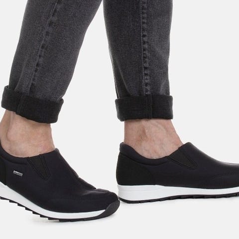 Myk tøyelig Gore-tex. Innersåler følger ikke med, beregnet for fotsenger. Ekstra bred passform og romslig tåboks.