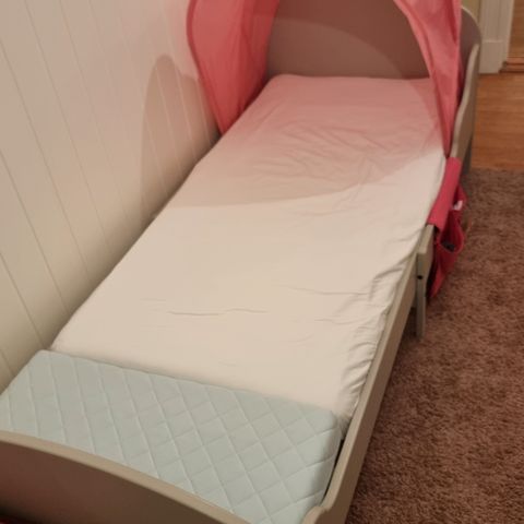 Selger sengen til datteren vår da hun har vokst ut av den. Sengen er i god stand med noen bruksmerker.