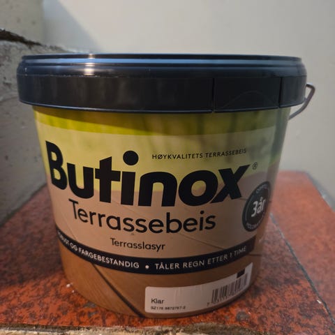 Spar 200.- Infra terrassebeis, 10 L, selges kr. 500.- evt bytte i noe. Se tekst.