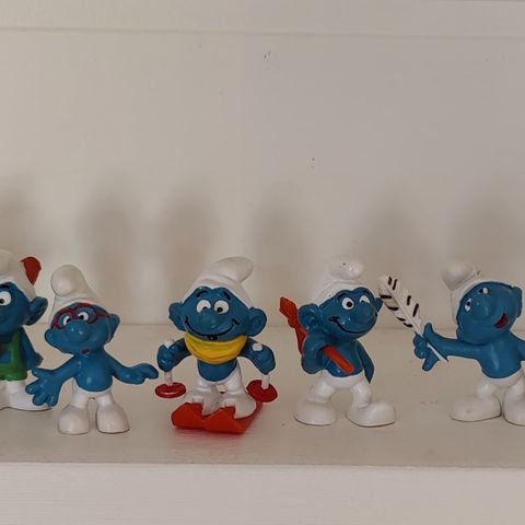 - feiersmurf. Har to stk. Mangler feierkost og stige. Merket Peyo 1. Kr 60/stk.