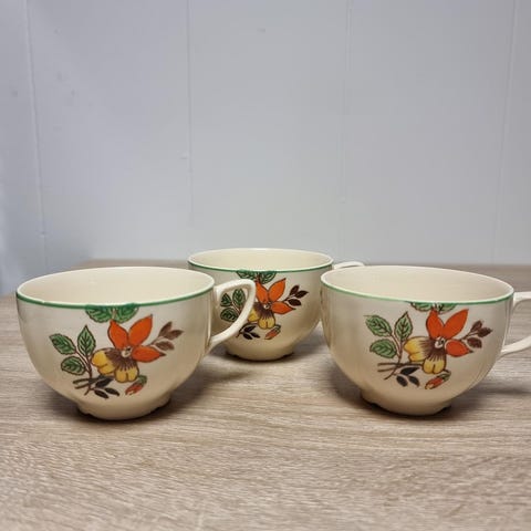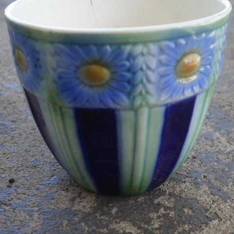 Kopp håndmalt , brun blomst ? Se logo på bilde