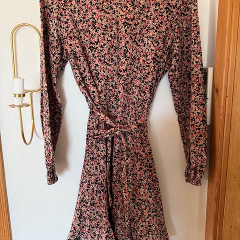 Veldig pent brukt omslagskjole i burgunder/ offwhite farge. 2/3 armer som er pene med oppbrett.