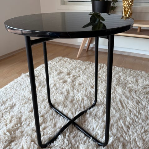 Et rundt bord (Ø120 x H75 cm ) og 4 myke komfortable velour stoler