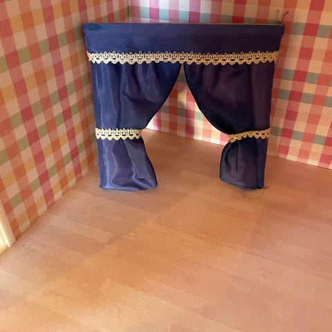 Lite brukt dukkehus. Har en skade i bakveggen som vist på ene bildet.