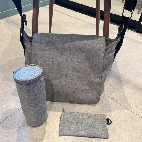 Stellebag med drikkeholder og stellematte.