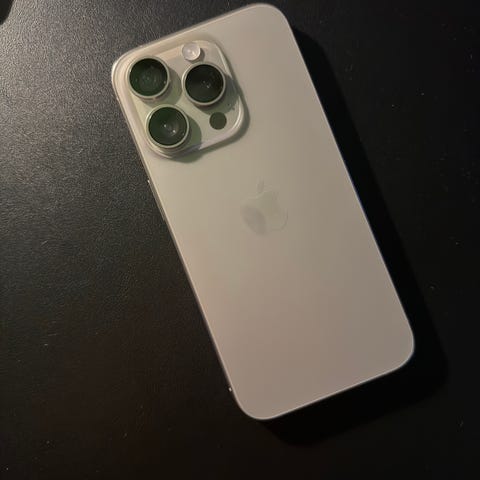 Pen brukt iPhone 15 pro 128gb til salg. Den ble brukt under 6 måneder. Batterikapasitet 100%.