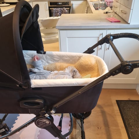 Pent brukt babydel til Baby Jogger, passer en rekke Elite vogner. Vi har vært meget fornøyd med den og tatt godt vare på den. Noen minimale merker på yttertrekk, ingen på innertrekk - men alt kan tas av og vaskes!