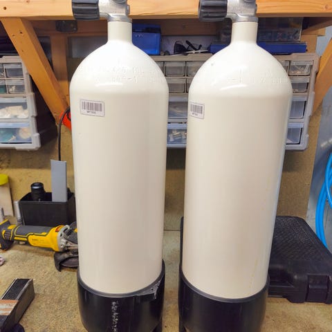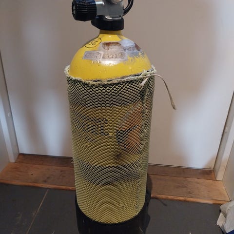 10 ltr/300 bar flaske, stål, kompl med kran og ståbunn. Flasken er sponsorgave til Norsk Dykkehistorisk Forening, og selges til inntekt for foreningens drift.