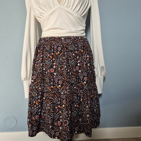Flott skjørt kjøpt i vintage-butikk i København. Selges da det ble litt fir «sprekt» for ei godt voksen dame. Fant liksom aldri rett anledning, derfor ikke brukt av meg. 😅