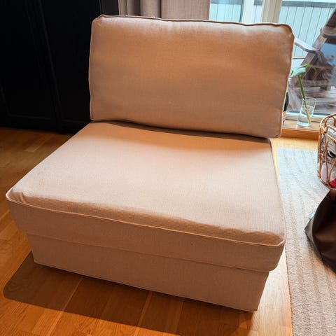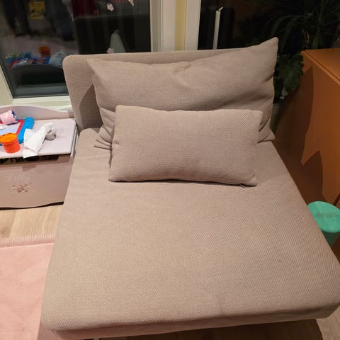 den nye sofaen kjøpt i desember 2024 ligger på hjemmekontoret mitt, som jeg ønsker å pusse opp, og derfor selger jeg den. Den er kjøpt på Skeidar og full pris er 20.899 kr. Jeg selger den for 15.000 kr.